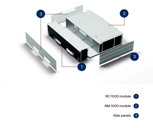 RC 1000 är en kylmodul för AM 1000, där en kylyta försörjs med kyld vätska från en extern källa.